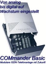 lässt. Die modulare Bauweise ermöglicht die flexible und auf den Anwender optimierte Konfiguration der Anlage. Der COMmander Basic verfügt über einen flexiblen Rufnummernplan und kann bis zu 32 Teilnehmer verwalten.